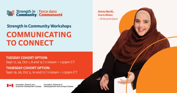 Joignez-vous à l’animatrice Geraldine De Braune pour une autre série d’ateliers inspirants Strength in Community du Manitoba Women’s Enterprise Centre, conçus pour soutenir les femmes qui s’identifient comme telles, les entrepreneurs bispirituels et les entrepreneurs de sexe différent qui sont sur la voie de la découverte de soi, de l’acquisition de compétences et de l’autonomisation. De la maîtrise de l’image de marque et de la présentation à l’alignement de la communication numérique et aux pratiques régénératrices, SCW Communicating to Connect fournit une boîte à outils complète pour réussir en vous apportant les compétences et les connaissances dont vous avez besoin pour prospérer dans le monde de l’entreprenariat. Dans le cadre de ce programme, vous allez : – Améliorer votre image de marque et vos compétences en communication en rédigeant des récits convaincants qui trouvent un écho auprès de votre public – Développer un avantage concurrentiel en vous démarquant sur le marché – Tirer parti des réunions de découverte pour l’étude de marché et le développement des affaires, ouvrant la voie à une croissance et une expansion stratégiques – Aligner votre objectif sur votre stratégie numérique et construire votre communauté – Protéger vos limites et communiquer vos besoins pour éviter l’épuisement S’engager avec d’autres femmes d’affaires à travers le Canada et obtenir plus d’outils pratiques de la part de la spécialiste Keisha Paul (Keisha Paul Consulting) pour soutenir votre cheminement personnel et entrepreneurial. S’inscrire ici